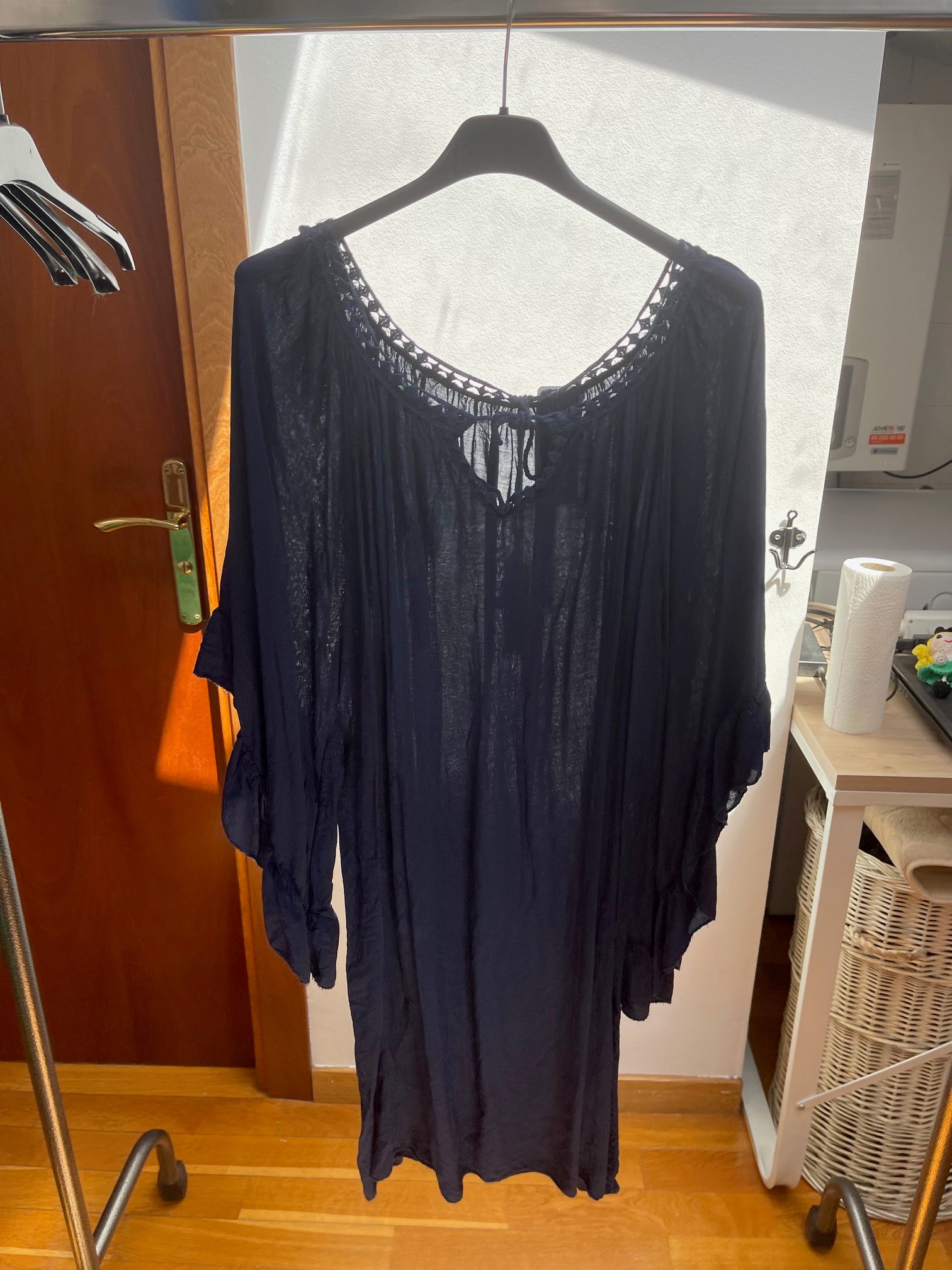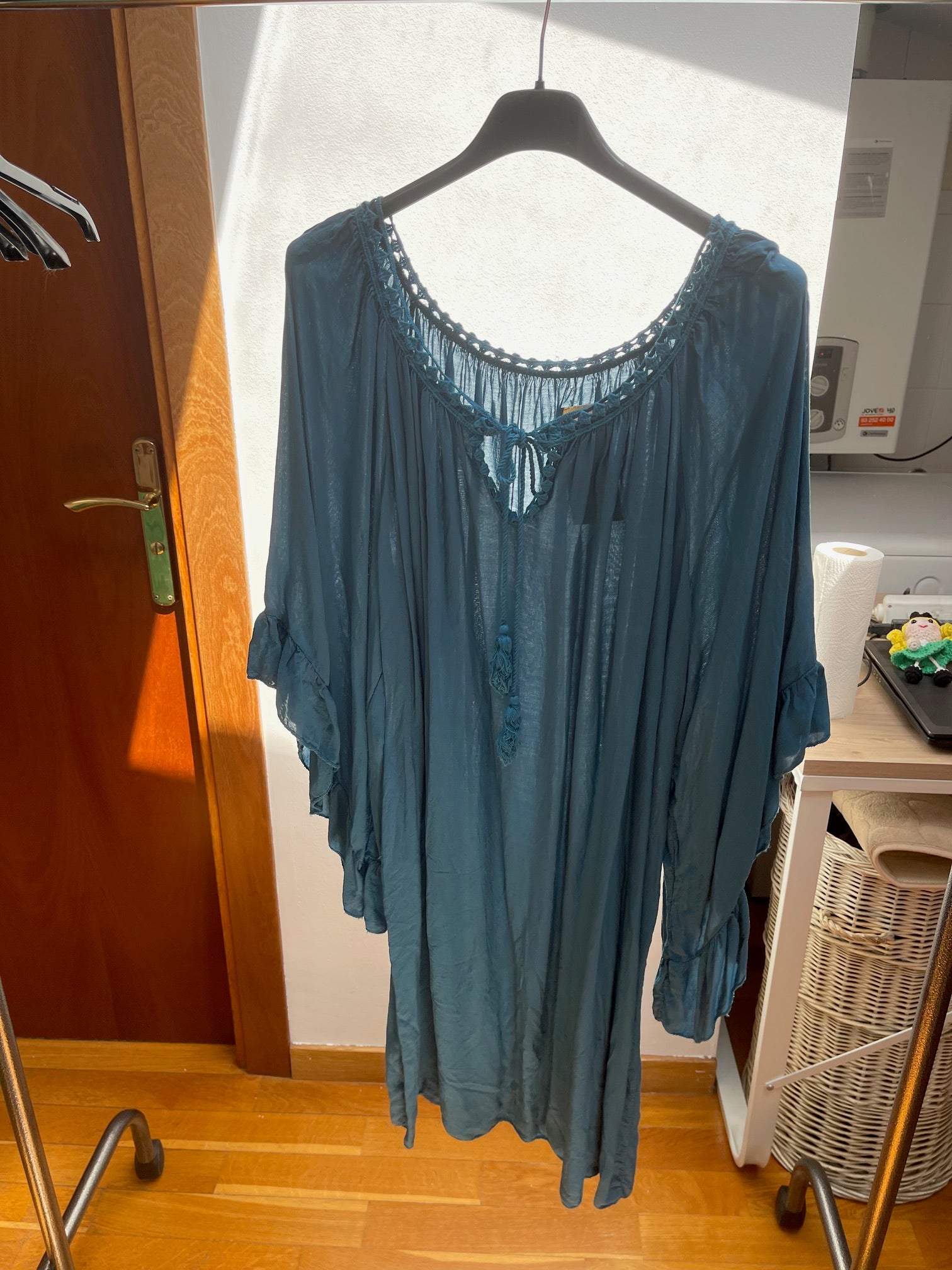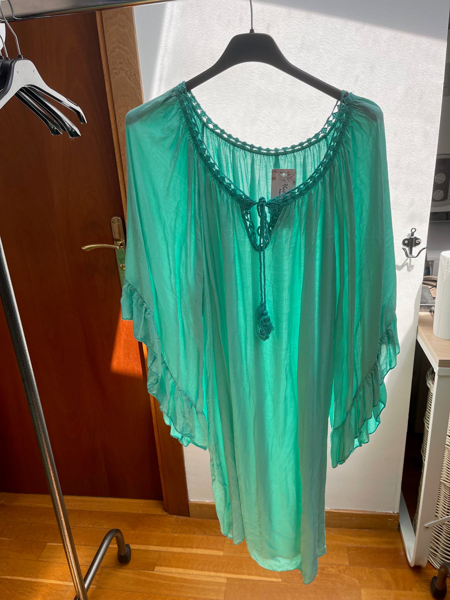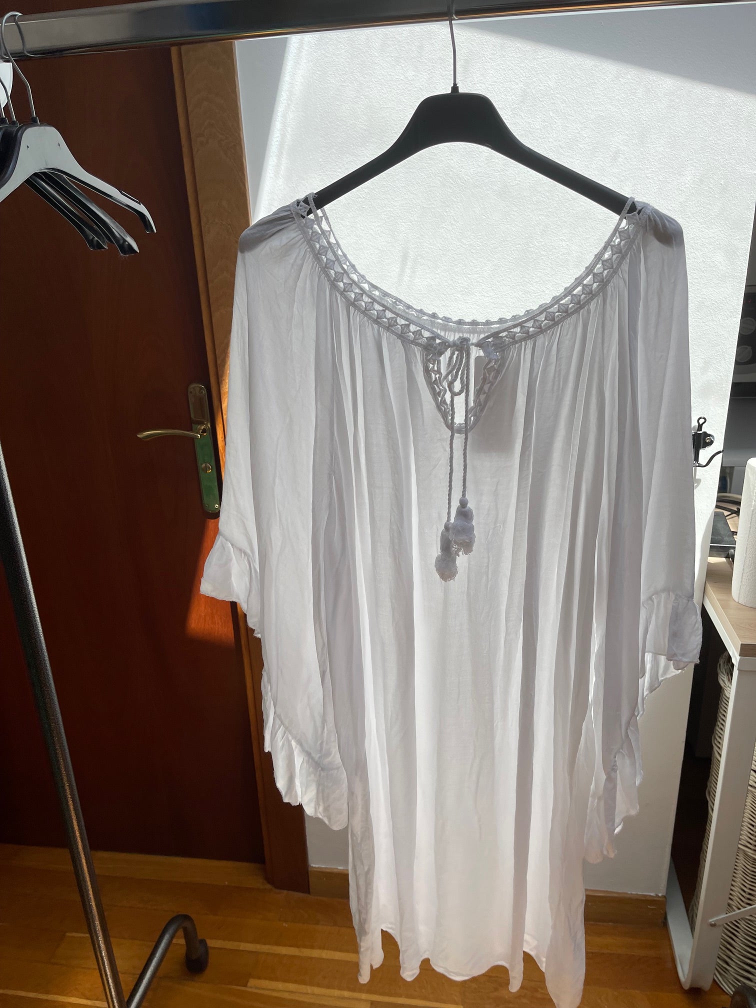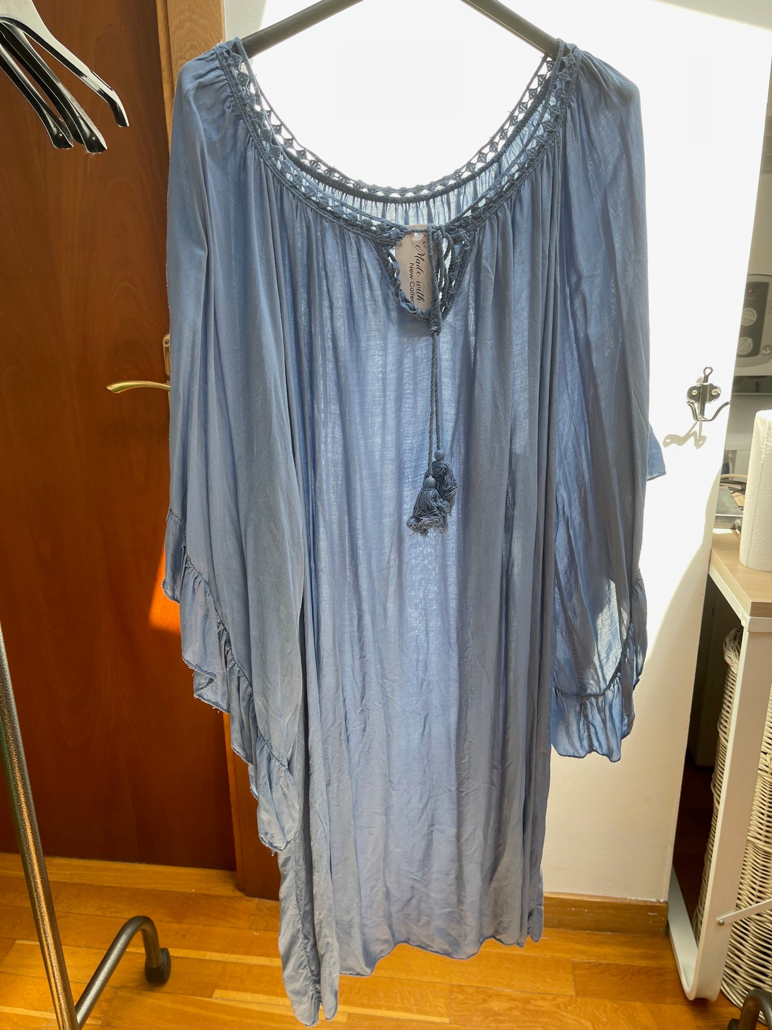 Col Rond bordé de dentelle avec lacet de fermeture manches avec volant