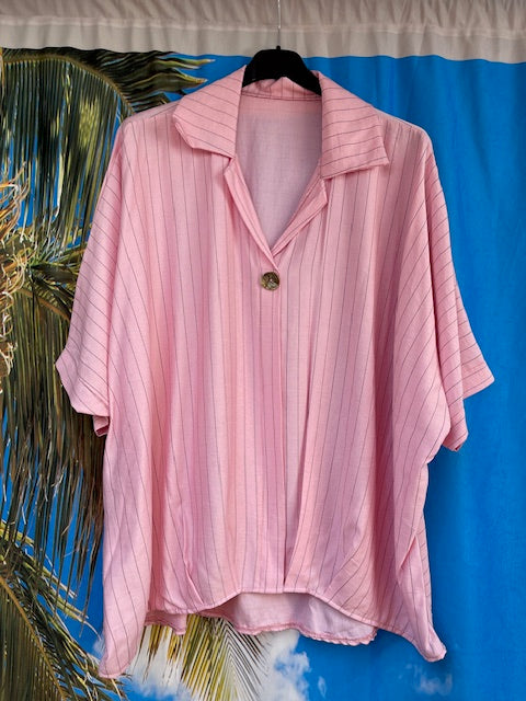 Col plateau décolleté V boutons de déco manches 3/4 froncé sur le bas