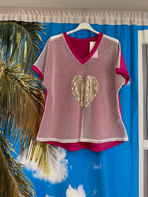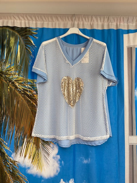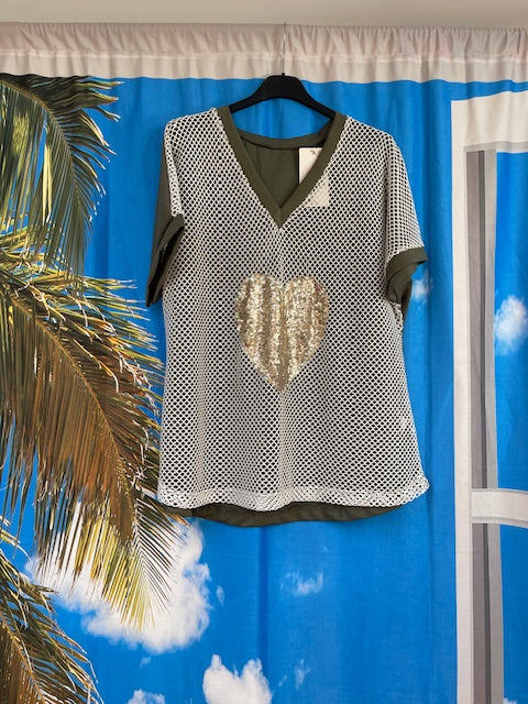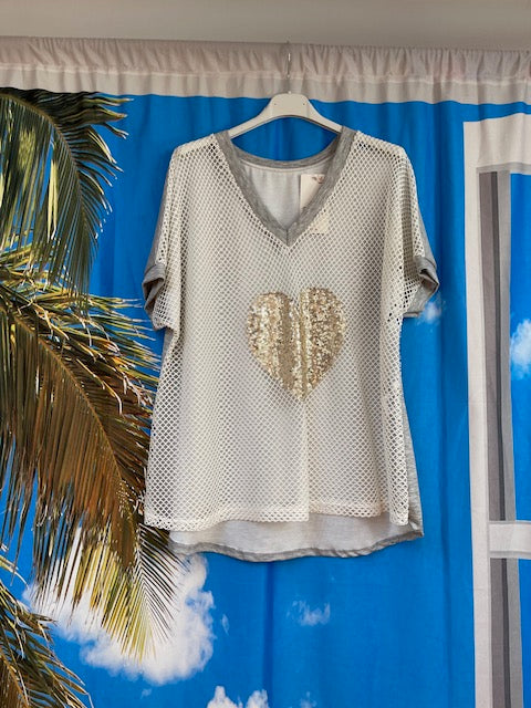 Col V effet filet avec cœur en sequin