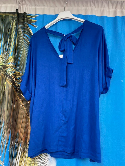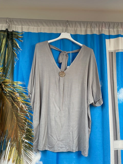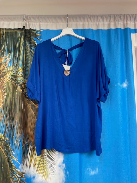 Devant Col V orné d'un bouton doré dos Col V avec nœud manches courtes